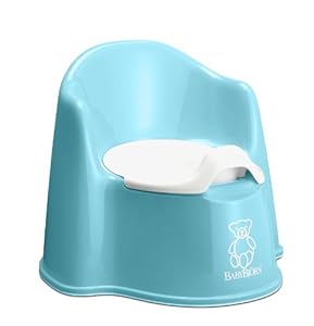 Pick up a potty chair with the child. A simple potty chair is best. No fancy gadgets with bells, lights and sound effects. No toilet paper holder. No book rack. Just. A. Potty. Chair.